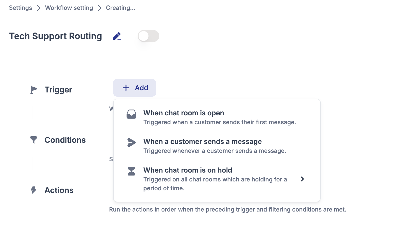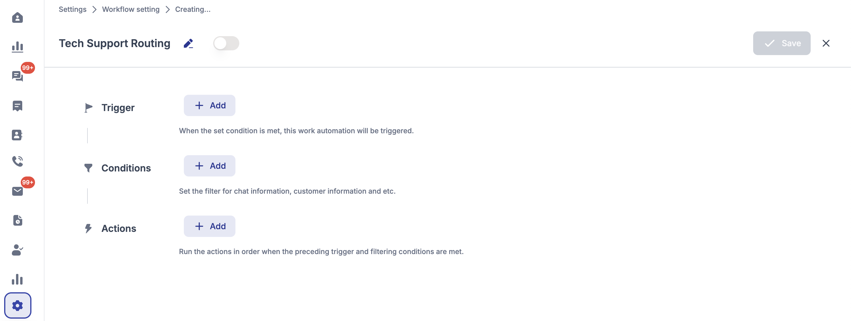2. Give your workflow a **Name** (e.g., Tech Support Routing).