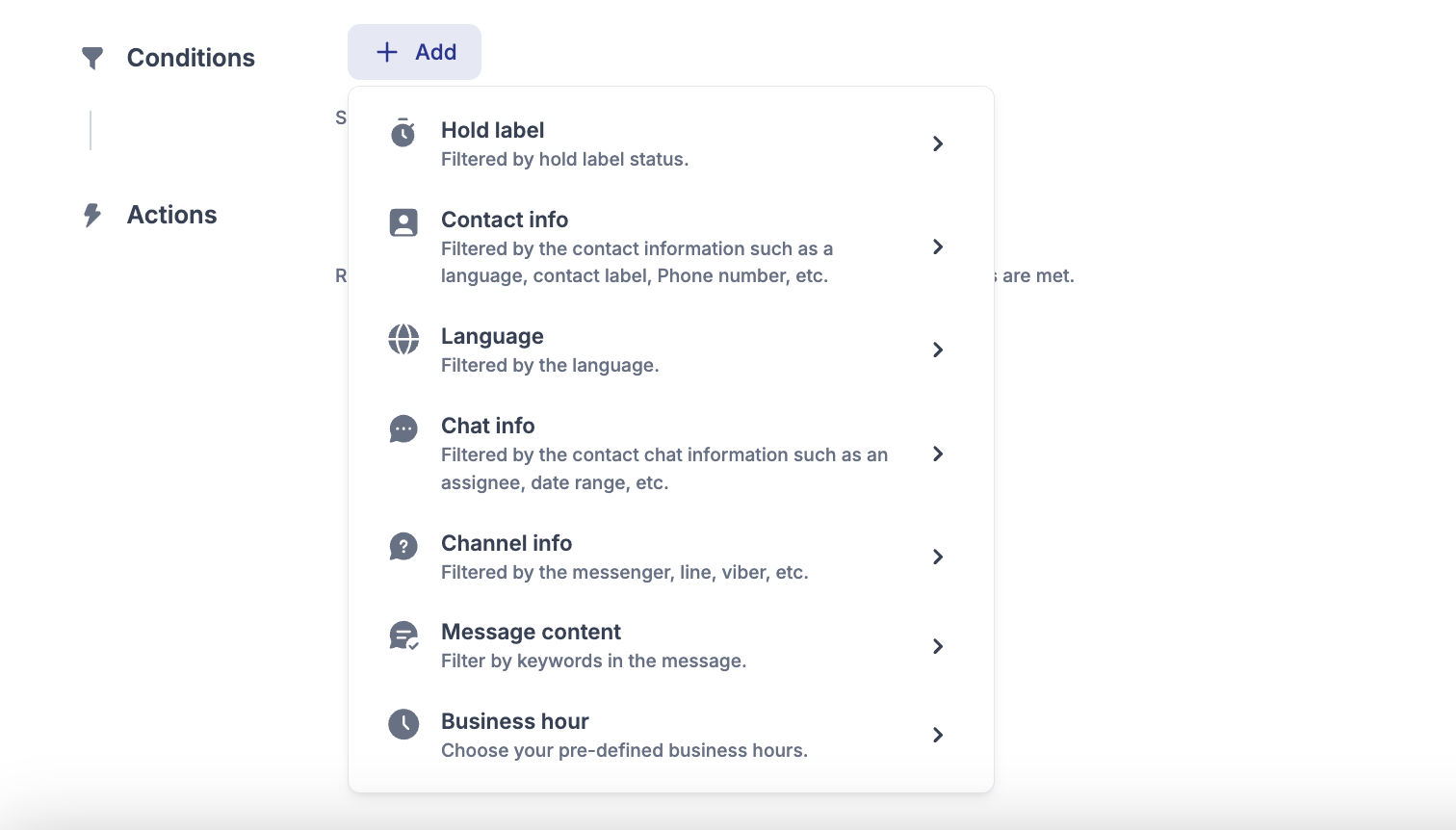 * **Customizable Conditions:** Set conditions like message content, customer location, or communication channel to trigger the correct workflow.