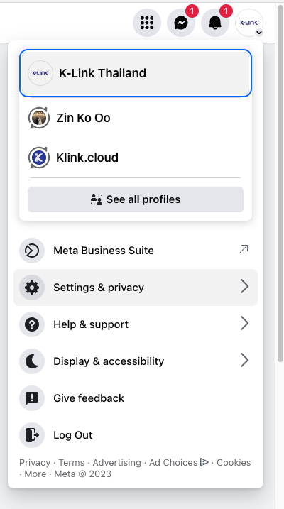 1. Go to your Facebook Page and click **Settings & Privacy**