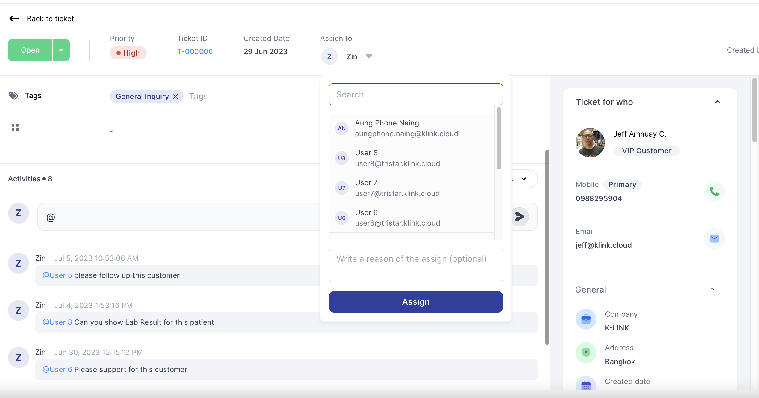 # Assign / Transfer Ticket